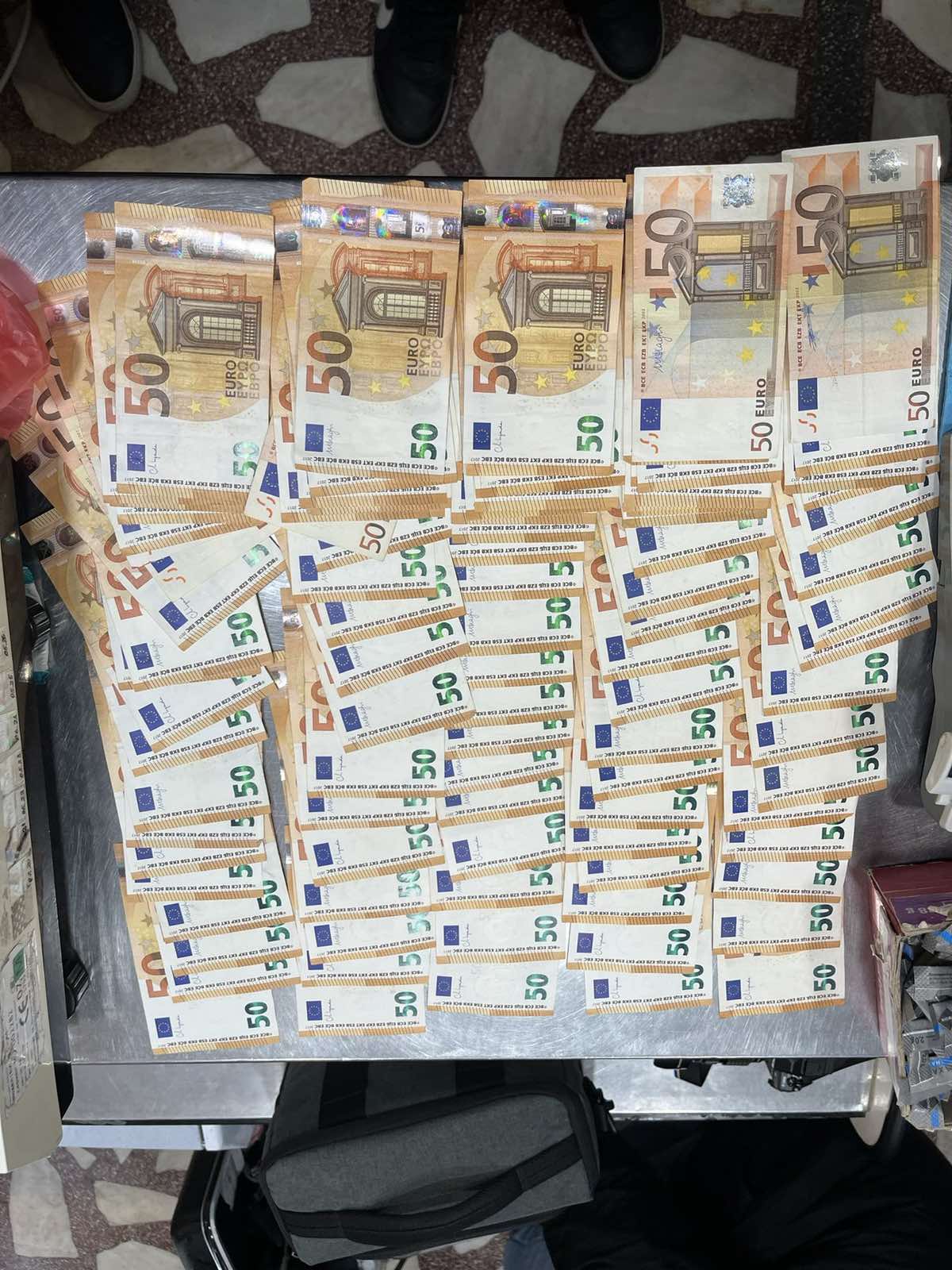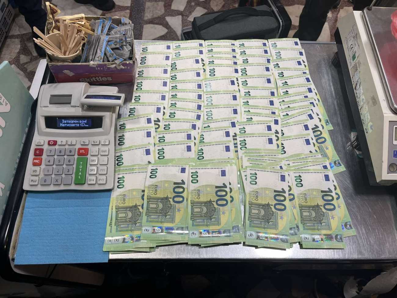При претърсването в метална каса е открита сумата от 20 000 евро, разпределена в банкноти от по 50 и 100 евро. Допълнително, в офис към търговския обект полицаите са намерили още 1715 евро, подредени в няколко пачки с банкноти с номинал от 5 до 100 евро. На място са иззети и агитационни материали за определена политическа партия.