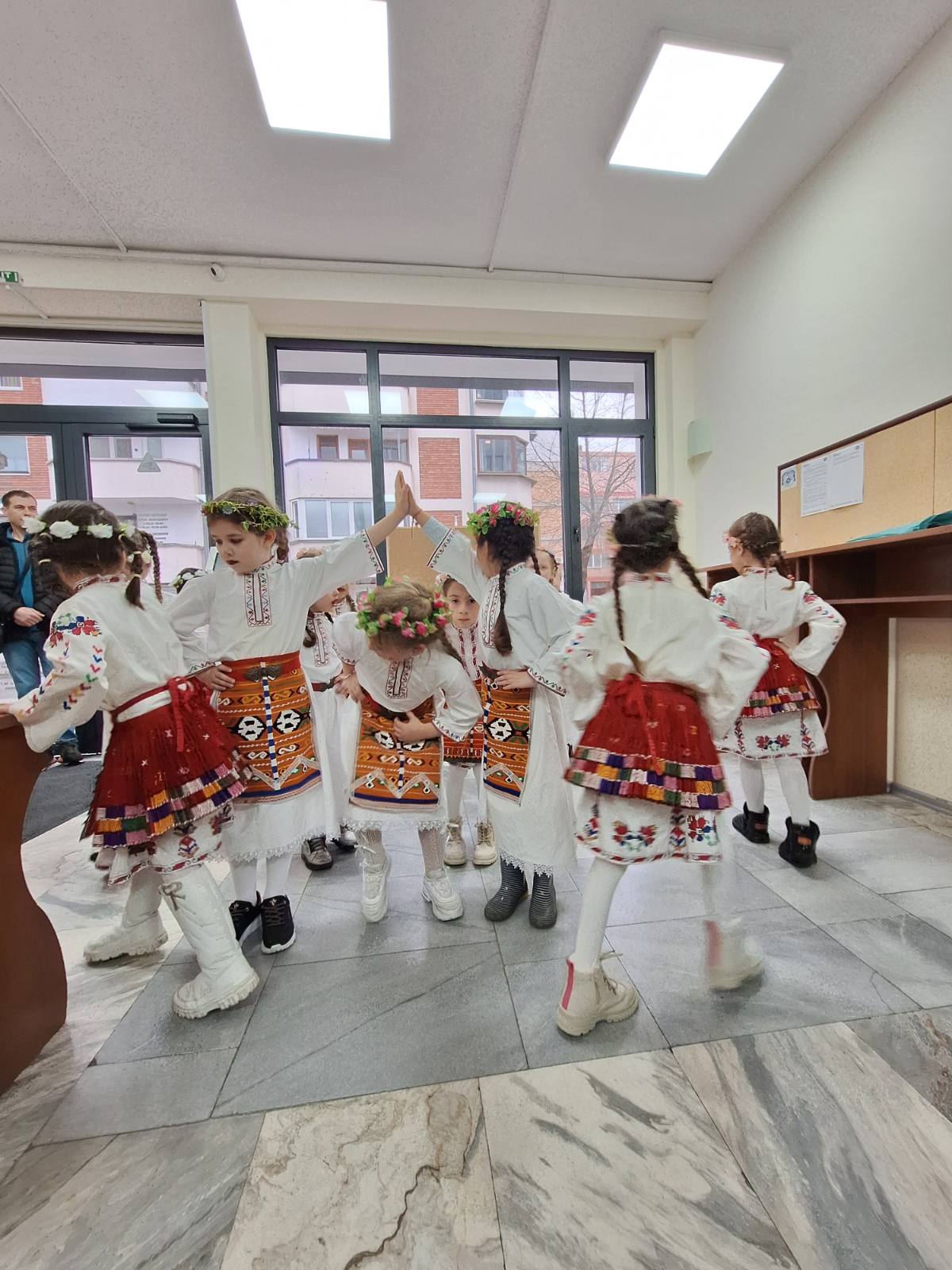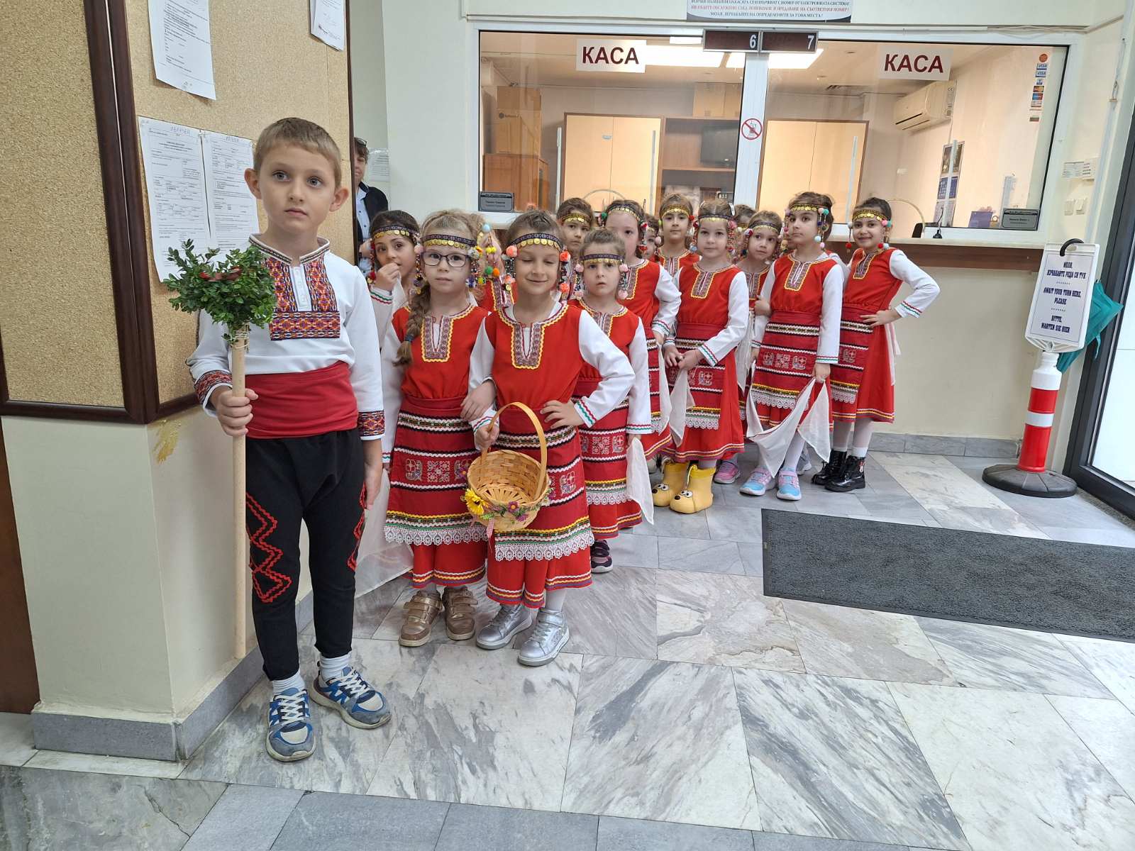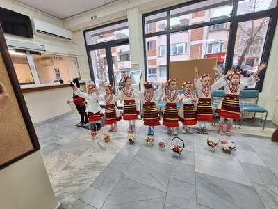 Деца от ДГ „Яна Лъскова“, ДГ „Моряче“ и ДГ „Калина Малина“ поздравиха служители и посетители с песни, танци и наричания в навечерието на Лазаровден и Цветница