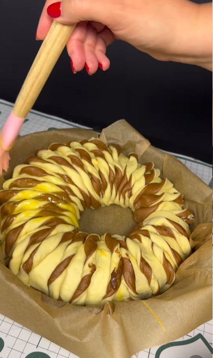 Преди печене, разбийте яйце и намажете с него рулото.