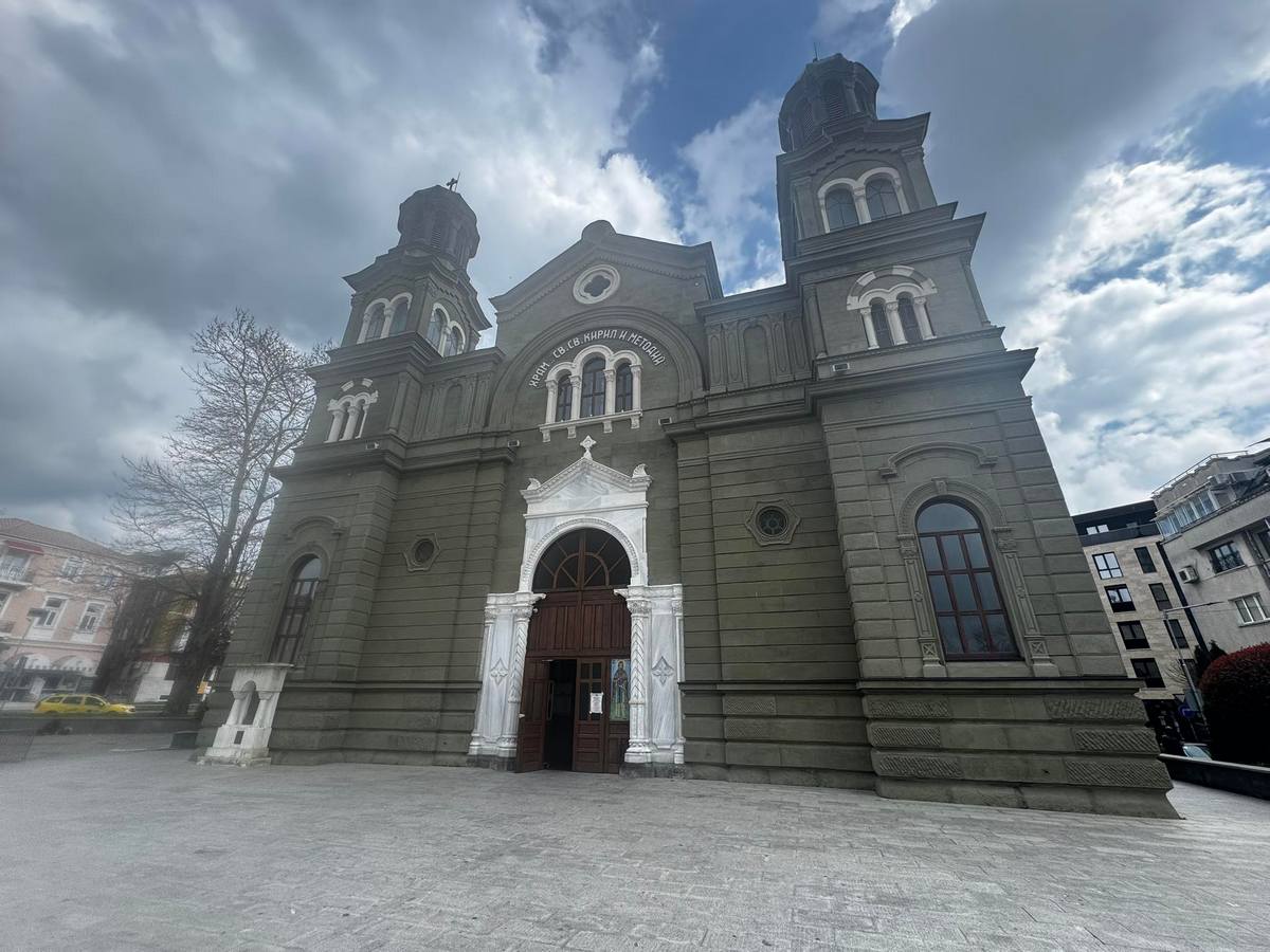 Репортер на Флагман.бг направи проверка и на местоположението на катедралния храм "Св. Св. Кирил и Методий" в центъра на Бургас. Компасът показа абсолютно същите стойности, каквито отчете и пред входа на храм "Света Троица" - 227° ЮЗ.