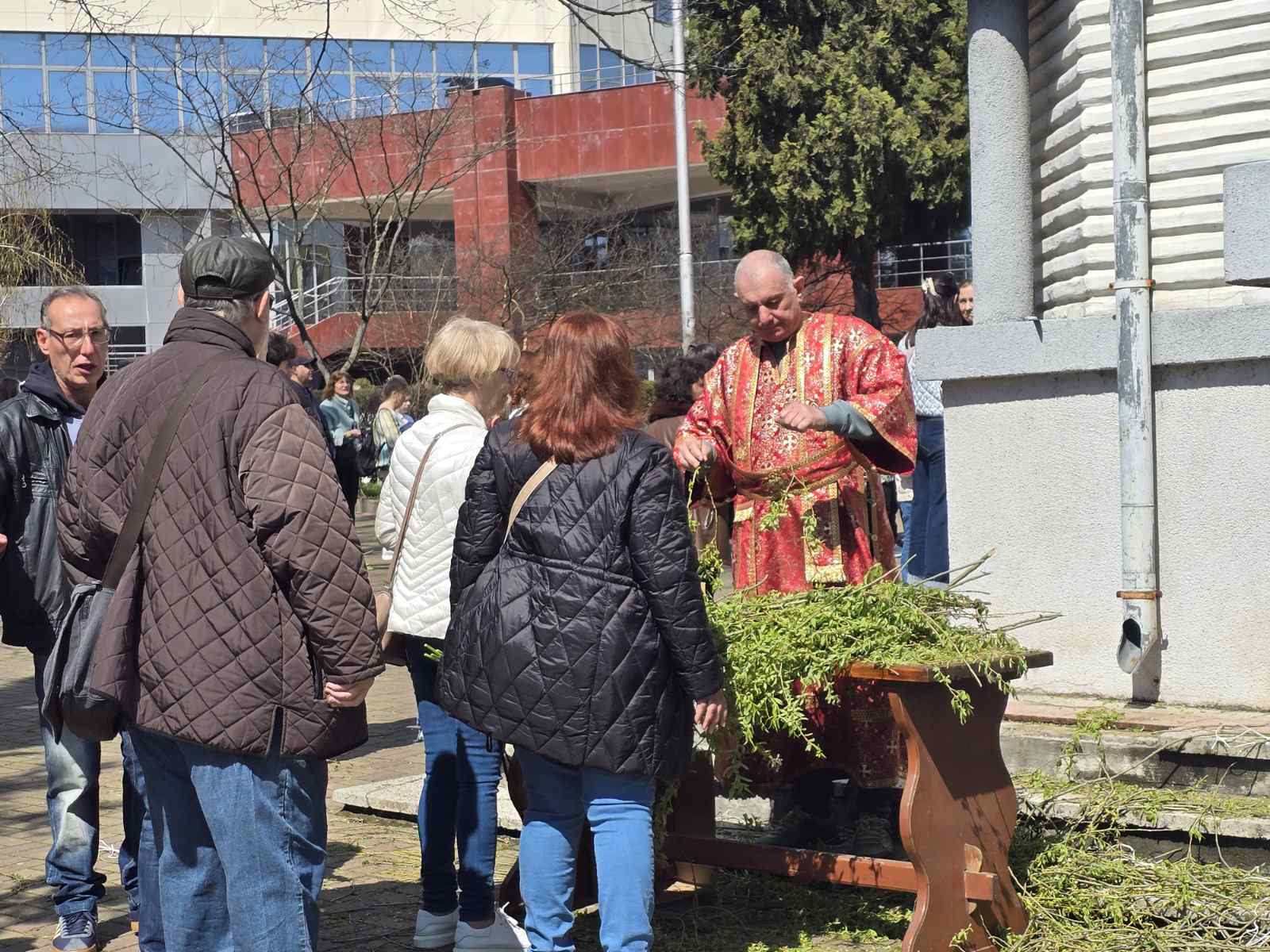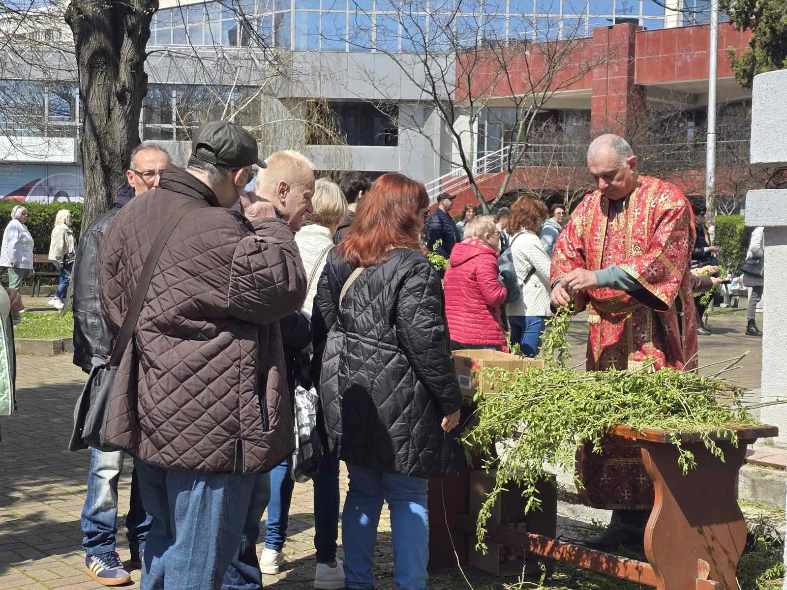 Още от сутринта пред храмовете в Бургас се събраха десетки миряни за Цветница. Около входовете се образува обичайната за празника навалица от хора на различна възраст, дошли да се помолят за здраве и благополучие в дните преди Великден. Вярващи идват поединично, с децата си или с възрастни родители. Едни бързат да минат през храма преди обяд, други изчакват реда си, за да вземат осветена върба и да се помолят за здраве. В центъра на града потокът от хора бе най-видим около „Св. св. Кирил и Методий“, а при по-кварталните църкви атмосферата остана по-тиха, но също празнична. За Цветница православната църква благославя върбови клонки, които у нас заместват палмовите.