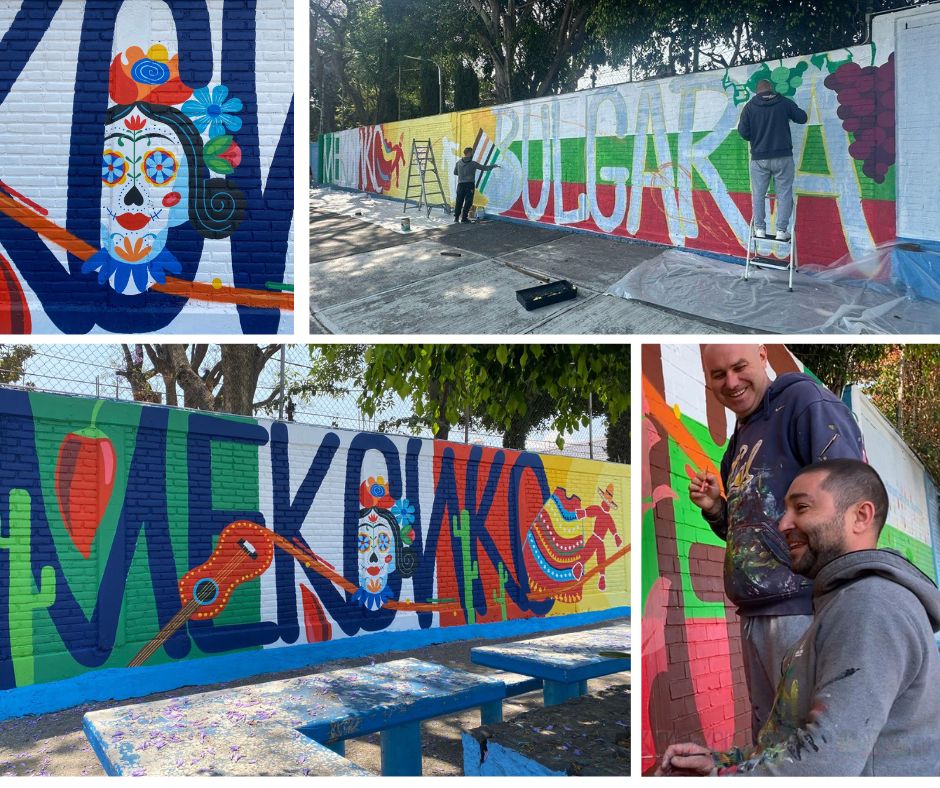 Бургаските артисти от творческото дуо SuperGteam - Николай Димитров и Даниел Дубаров, реализираха стенопис в дворното пространство на мексиканското училище „Република България“ в Мексико Сити.