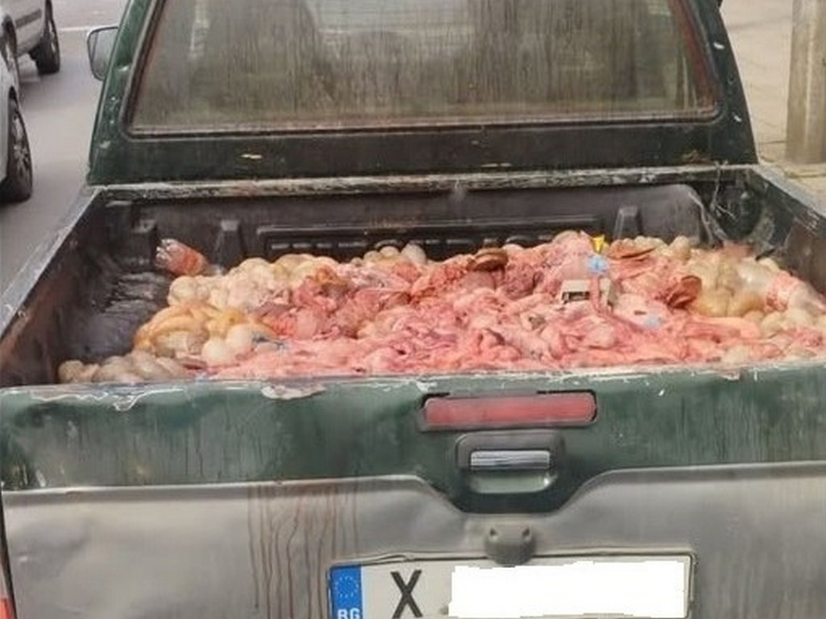 Случаят е установен от инспектори на Областната дирекция по безопасност на храните в Хасково при рутинен преглед на социалните мрежи. На публикуваната снимка се вижда пикап, натоварен с животински вътрешности в открита каросерия. След проверка шофьорът е бил установен със съдействието на Районното управление на МВР в града.