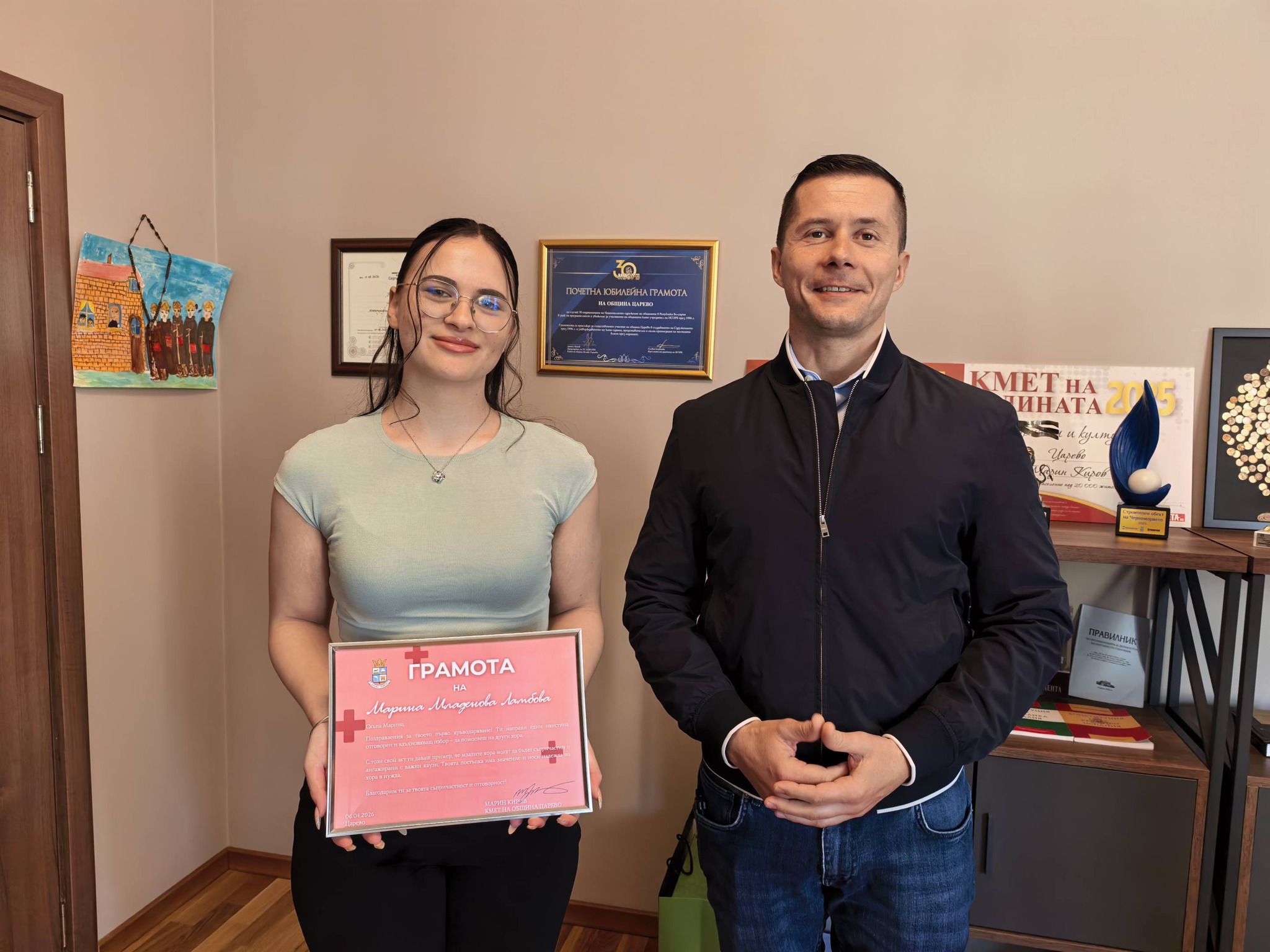 Кметът на Община Царево Марин Киров прие и поздрави представители на МБЧК-Царево и БЧК-Царево по повод активното им участие в кръводарителската кампания, проведена на 2 април 2026 г. в МЦ-Царево. Срещата постави акцент върху доброволчеството, личния пример и значението на подобни инициативи за местната общност.