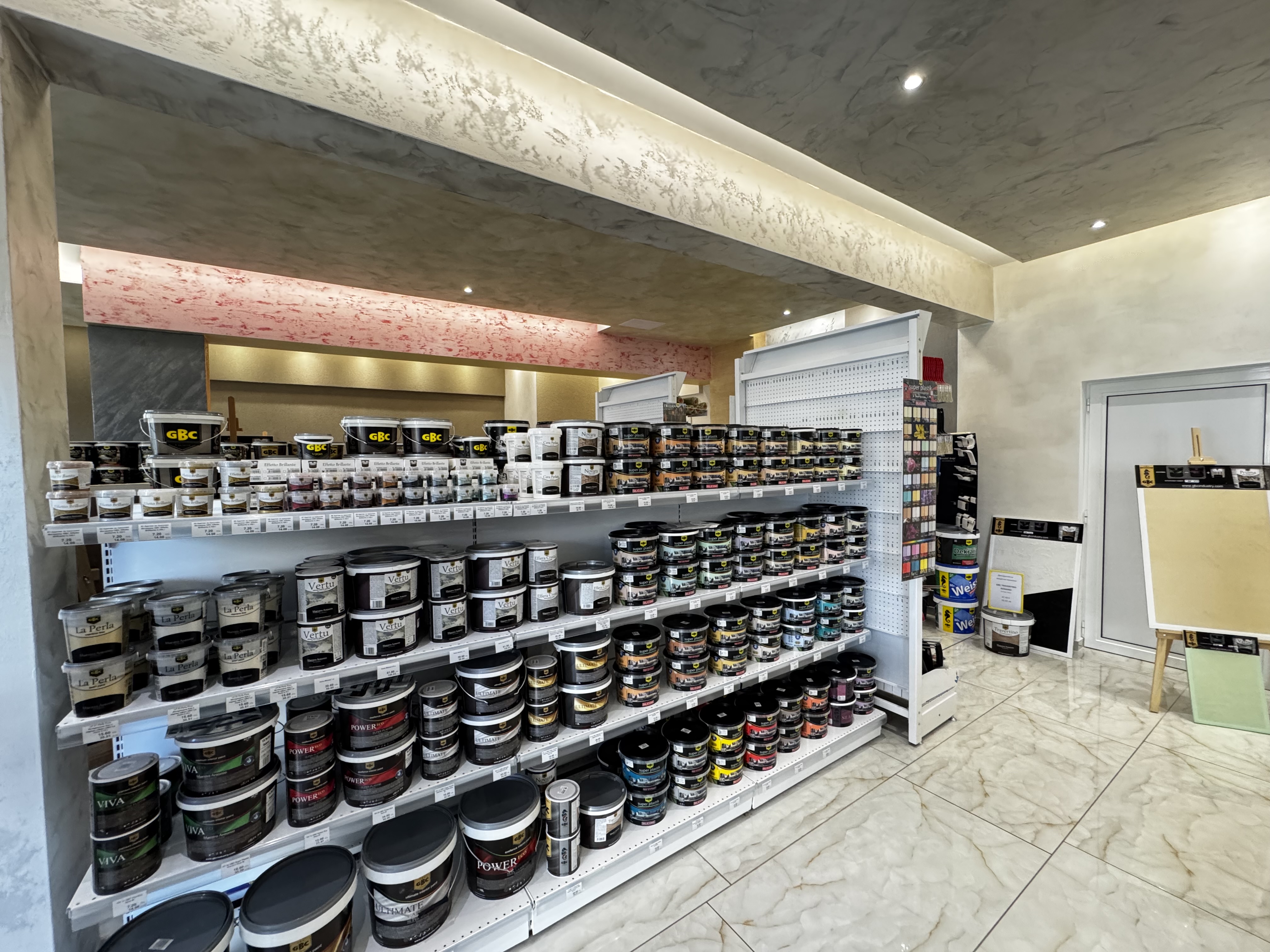 Освен интериорни мазилки, в магазина се предлагат още висококачествени лакове за дърво, готови шпакловки, премиум интериорни бои и други материали за завършен интериор.