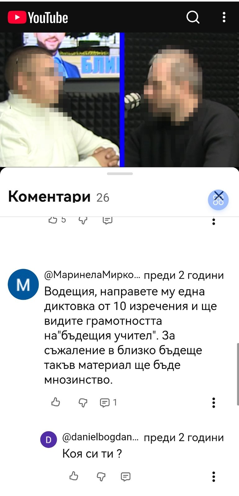 Той организирал т.нар. битки в TikTok с финансов елемент, в които са участвали и малолетни на 14 години. По предоставените материали се виждат екранни кадри от подобен тип съдържание. Въпреки че може да няма нарушение, подобна онлайн изява сама по себе си е потресаваща от учител. И когато към нея се прибавят съмнения за близост с ученици, училищна власт и липса на ясни граници, картината вече изглежда тежка и тревожна.
