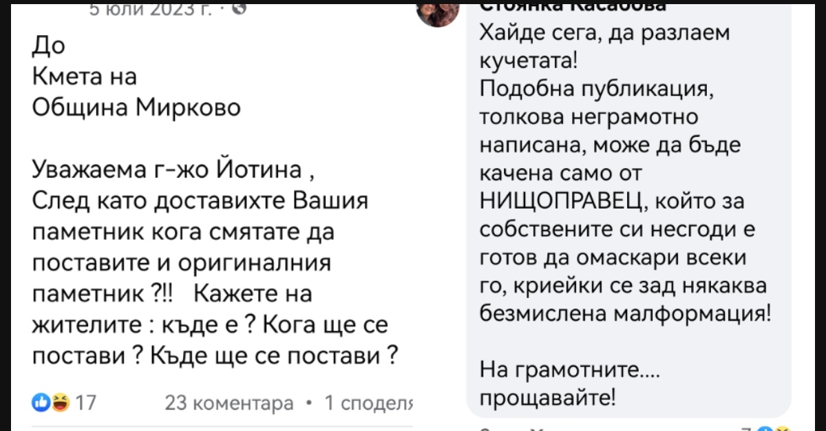 "Има дела срещу него. Във видеоклипове самият той обяснява, че е бил задържан преди години, без да знае защо. Свързахме се с Община Мирково, където му е адресната регистрация. Преди по-малко от 2 години кметицата го е осъдила заради нанесени обиди, сега подготвят второ дело срещу него, защото продължава с квалификациите и пуска доноси срещу Общината", обяснява Д.Х.