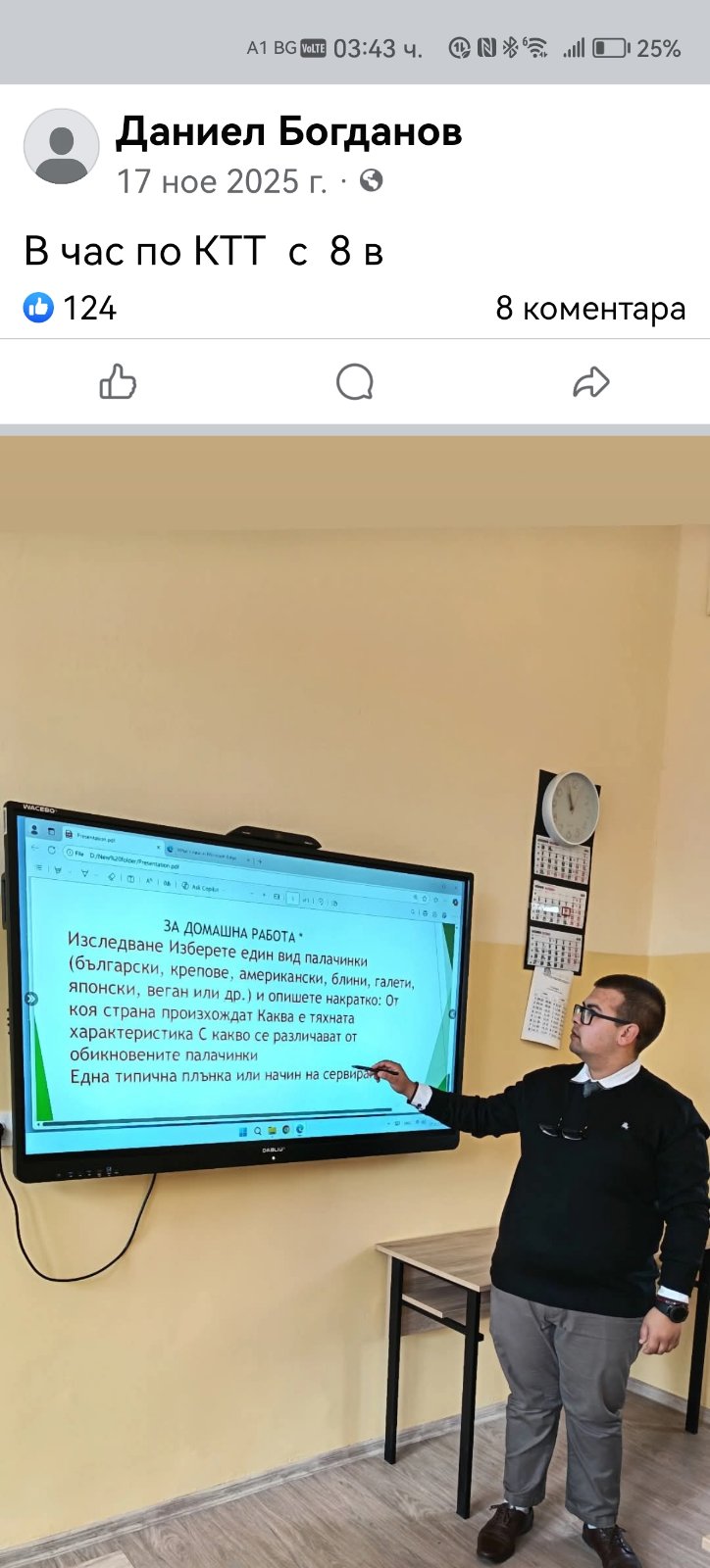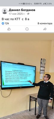 - Присъствие на състезание в гр. Велинград заедно с група учители, ръководство и ученици. На 19.03.2026 г. той лично сподели в личен профил снимка от работа на ученичка от състезателния етап.