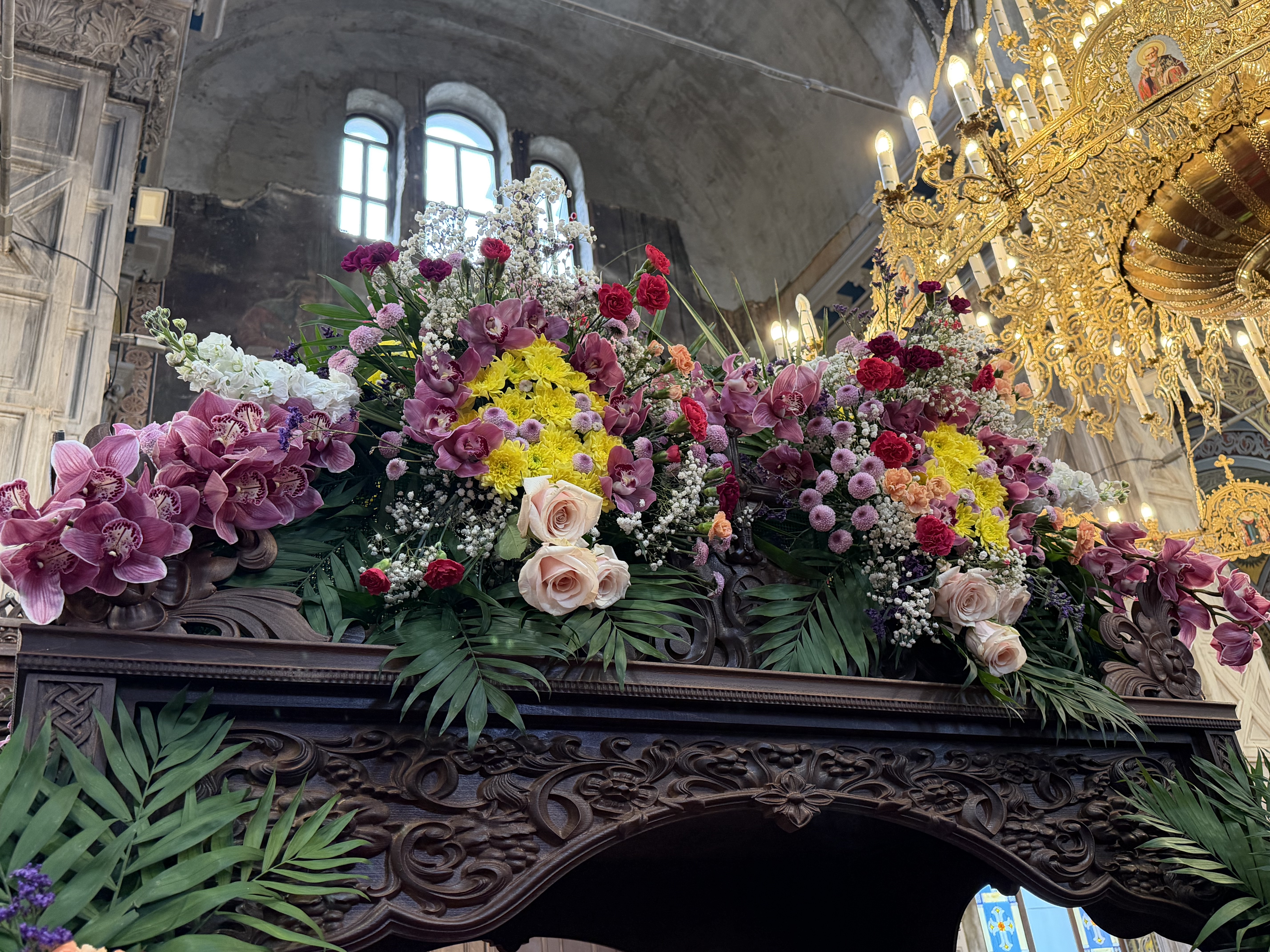 Репортер на Флагман.бг видя прекрасните произведения на изкуството, в каквито бяха превърнати рамките на иконите в двете църкви, но апогеят на творенията им днес е инсталацията от цветя над Христовия гроб, наречена кувуклион. Дървената конструкция сама по себе си представлява шедьовър на флоралното изкуство – изцяло подчинена на гръцката традиция епитафиос. Тази вечер е от изключителна важност преди най-траурния ден, когато сутринта на Велики петък ще се изнесе Светата плащаница, за да минат вярващите под нея.