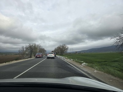 Участъкът е натоварен, движат се коли и в двете посоки, а препятствията на пътя създават риск за шофьорите
