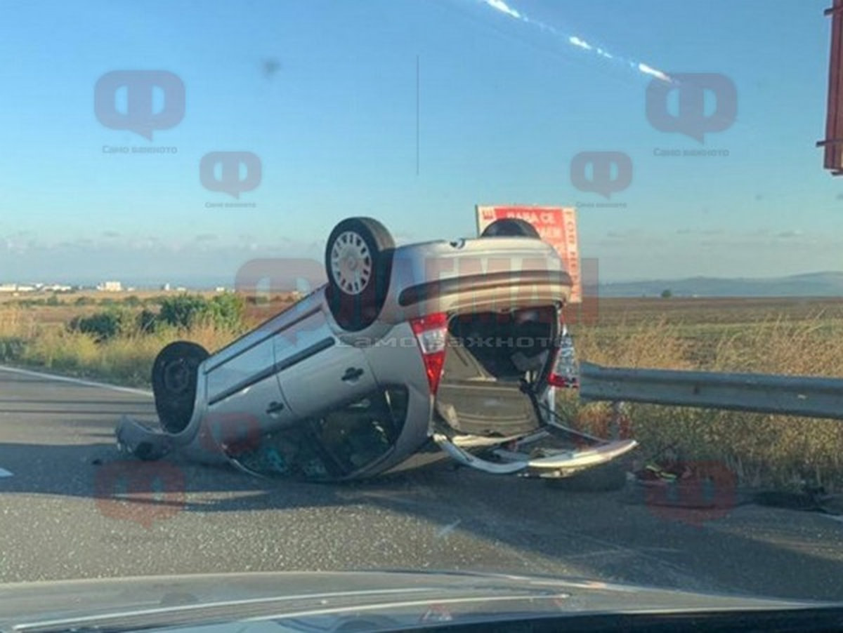 Инцидент на АМ Тракия, кола се обърна по таван