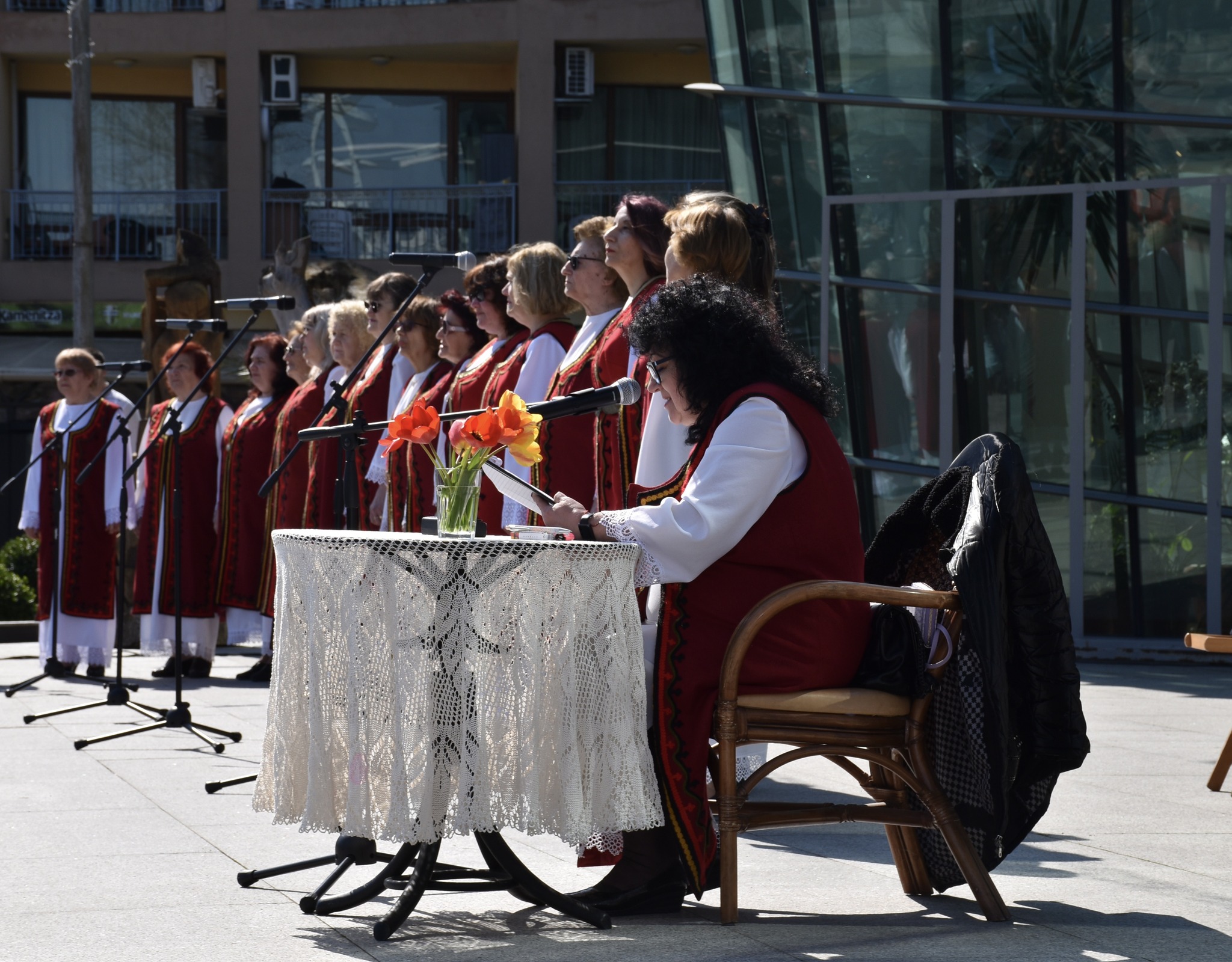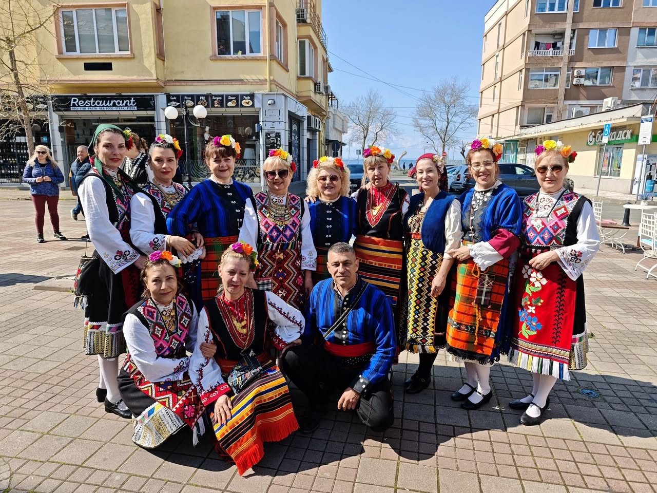 Стотици излязоха на площада в Поморие, за да си кажат „Христос Воскресе“, за да попеят и потанцуват. За чудесното настроение се погрижиха: Тракийско дружество „Одринска Епопея“ с председател Ана Тодорова, Певческа група „Тракийка“ с ръководител Дора Арбова, гъдуларят Ангел Ангелов и солистите Георги Драганов, Руска Драганова и Ваня Христова.