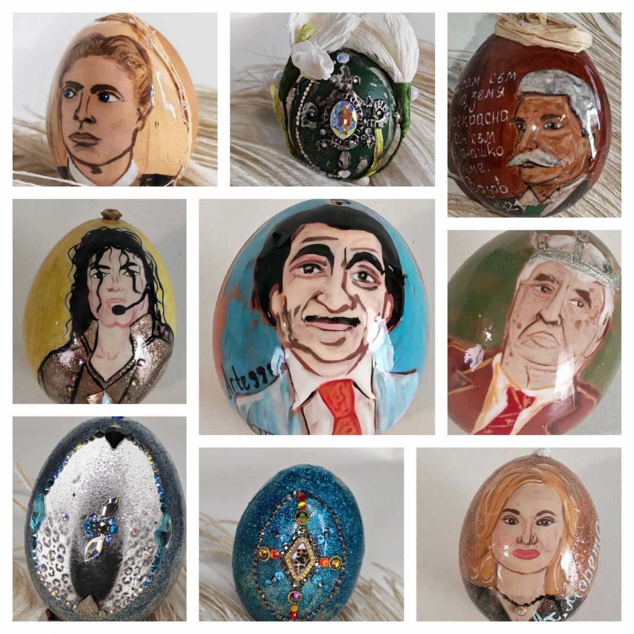 Особено въздействаща е серията „Яйца с послания“ . Това е селекция от мисли и цитати, вплетени в деликатната форма на яйцето, превръщайки го в носител на идеи . Сред изобразените личности се открояват Тодор Колев, Стоянка Мутафова, Георги Парцалев и неподражаемият Майкъл Джексън.