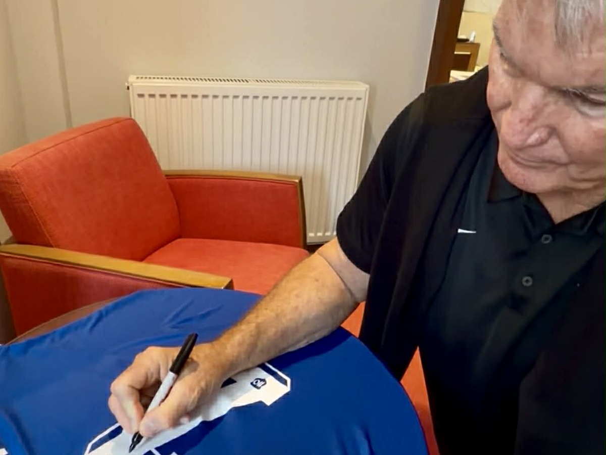 Холивудската звезда Сам Джоунс оказа чест на изпълнителния директор на Левски Даниел Боримиров. 71-годишният актьор подписа фланелка на "сините" с №7 и името на Боримиров на гърба пред погледа на българския финансист Кирил Евтимов.