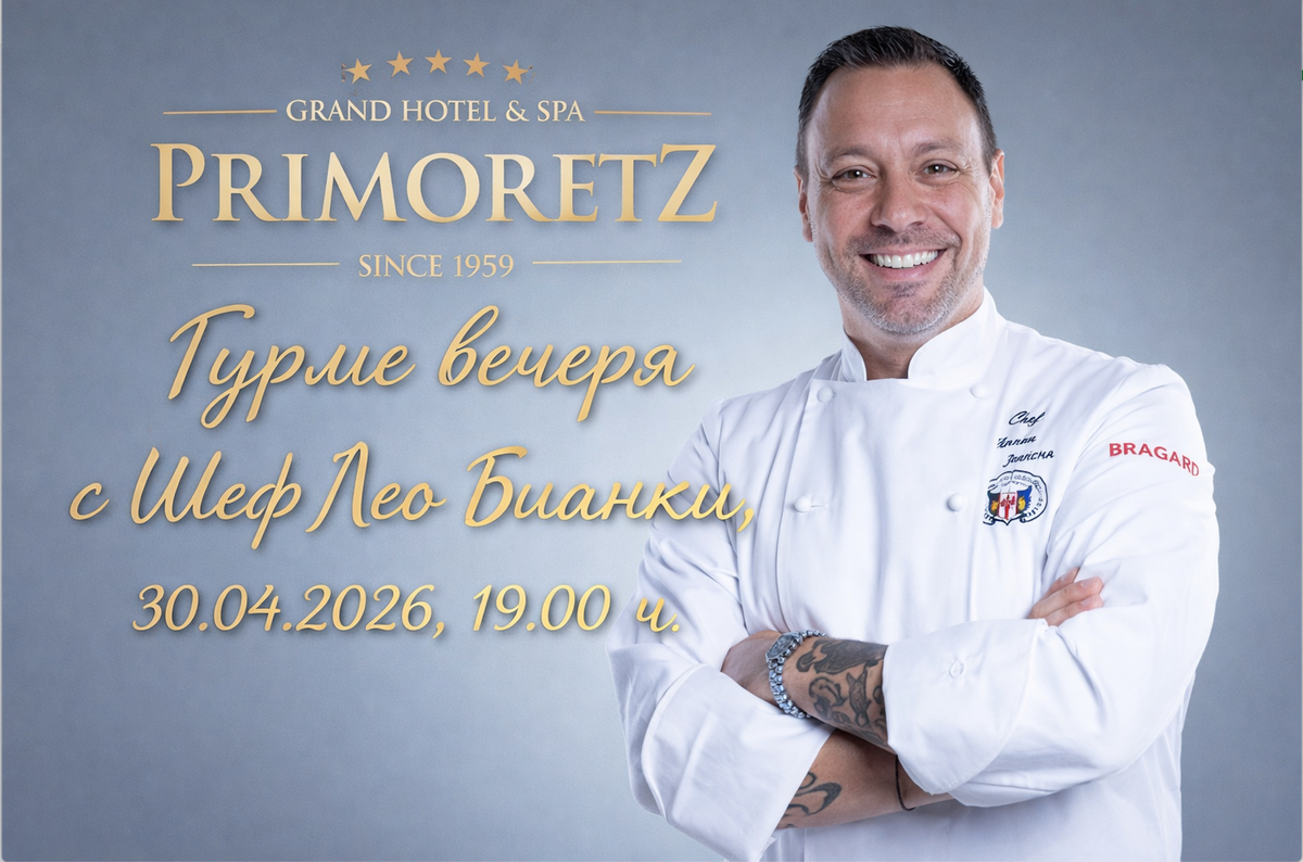 На 30 април 2026 г. (четвъртък) емблематичният Гранд Хотел и СПА Приморец ще бъде сцена на едно необикновено кулинарно събитие - Гурме вечеря с шеф Лео Бианки. Вечерта няма да бъде просто демонстрация на умения, а емоционален мост между спомена за предложената с обич първа лъжичка италианско джелато в Морската градина и изтънчените техники, усвоени в уъркшопи при носители на звезди Мишлен.