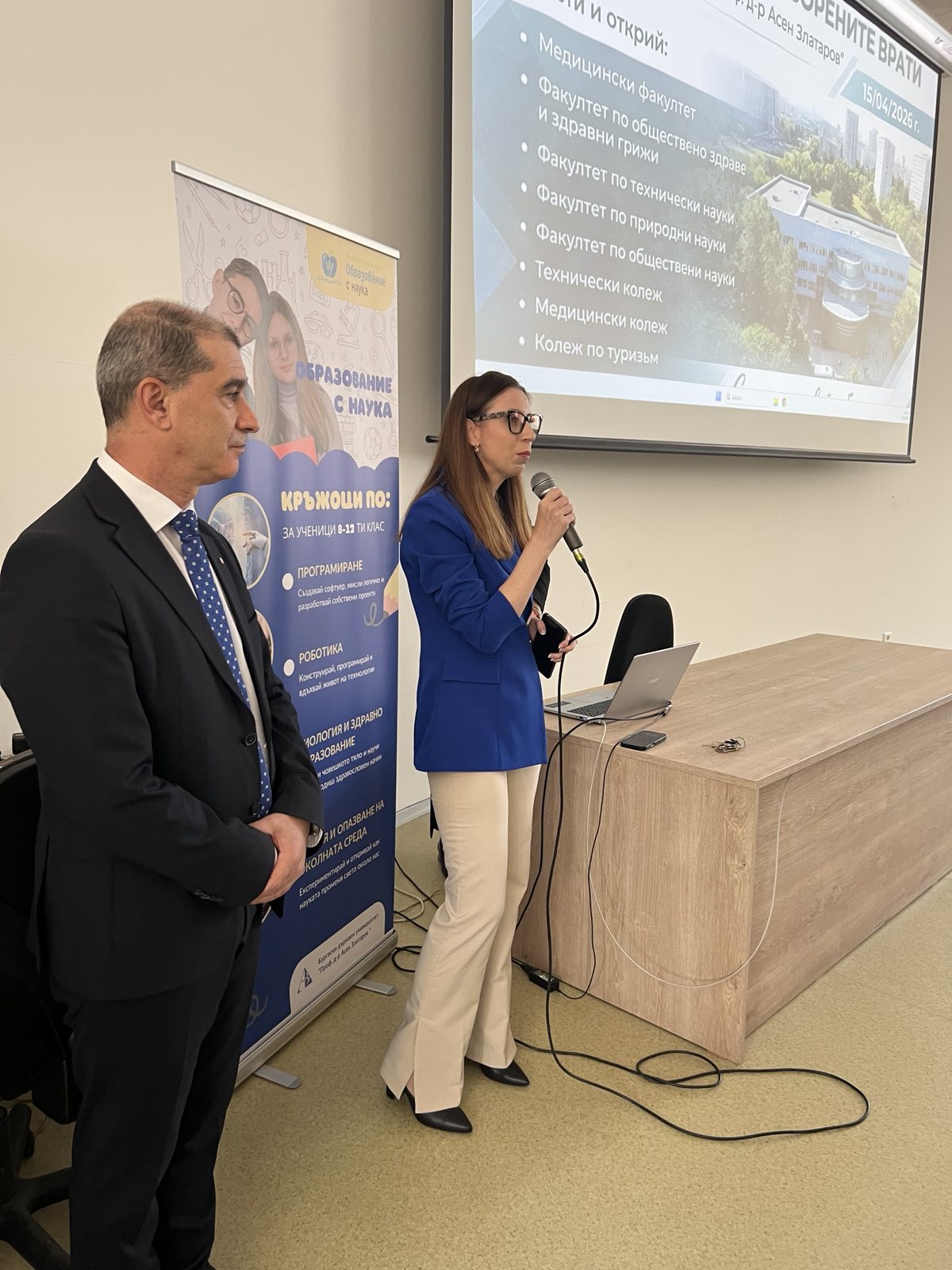 Проф. Севдалина Турманова, зам.-ректор по учебната дейност също изрази надежда пред младите гости на университета, че ще го припознаят като място, където ще намерят своето поприще и ще се развиват.