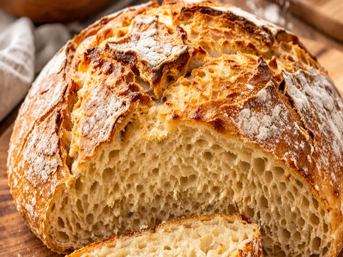 Тази рецепта доказва, че не е нужно да месите, да имате специална техника или дългогодишен опит. Резултатът е хляб с хрупкава коричка и мека, въздушна вътрешност, който спокойно може да съперничи на този от пекарна.