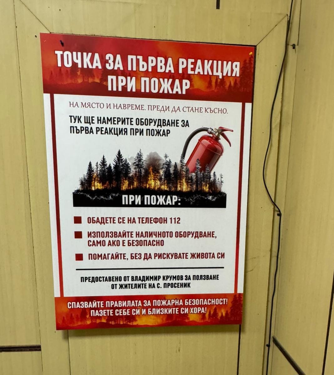 В Седмицата на гората Крумов лично оборудва такава точка в село Просеник и призова инициативата да бъде последвана и на други места в областта. Идеята е в първите минути при инцидент да има базово оборудване, с което местните хора да могат да реагират до пристигането на специализираните екипи.