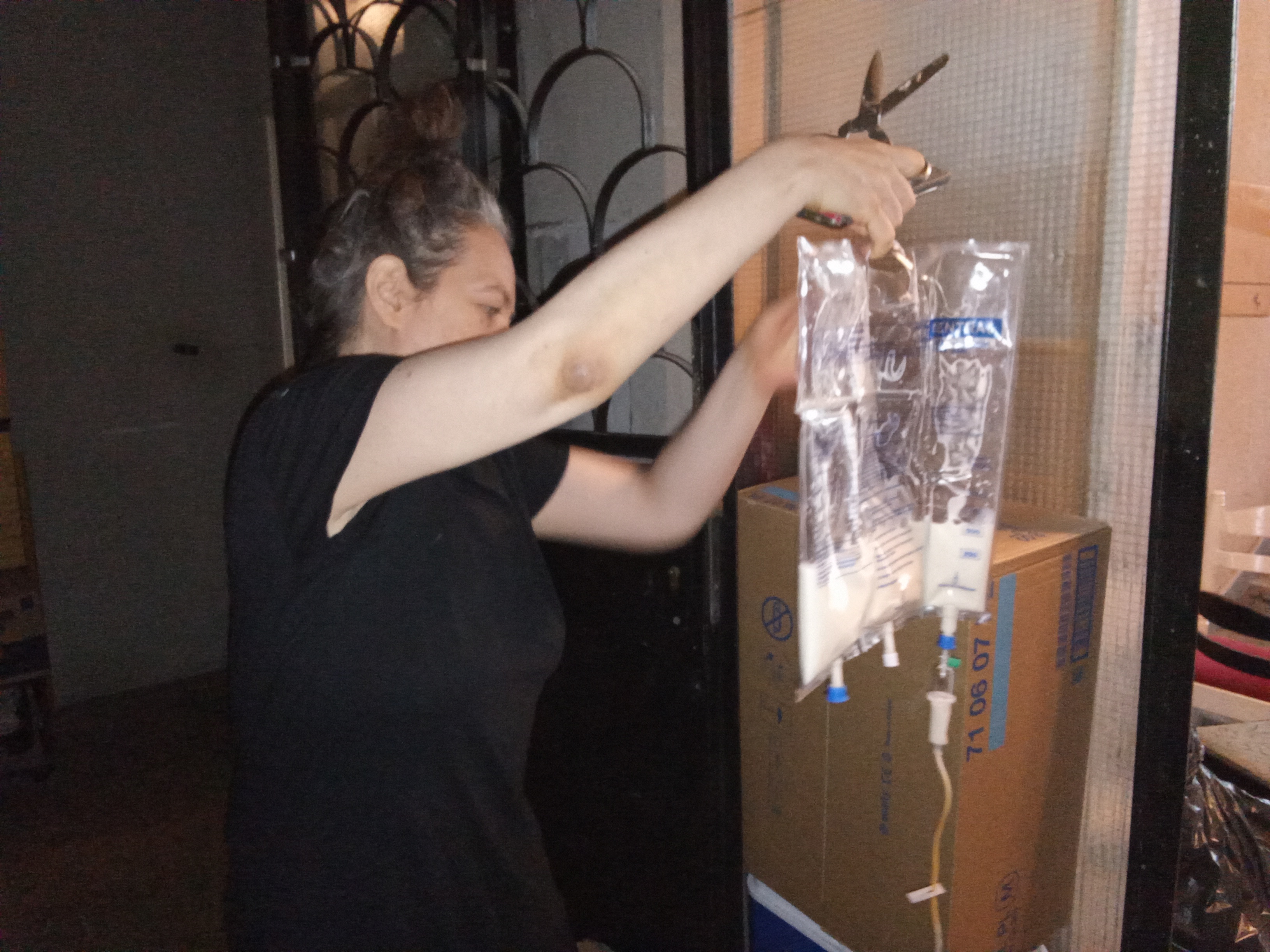 Храненето на Натали е сложен ритуал, който може да завърши трагично при най-малка грешка. Тя получава специална течна храна през катетър, пасирана храна с лъжичка (за да не се задави) и биберон. Катетърът се сменя редовно. Там, където тънкото черво е отвън, постоянно се образува рана – нужни са специални лепенки, а за свалянето им – конкретен препарат, който да позволи да се премахнат без нова рана по кожата.