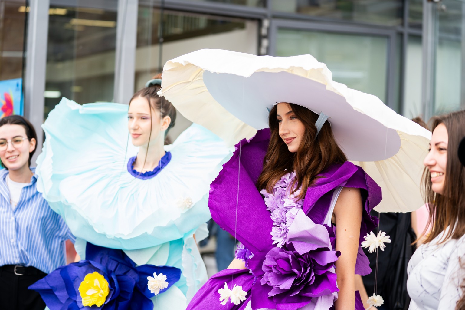 Модно ревю на цветни тоалети с вплетени живи цветя – инициатива на студенти от катедра „Моден дизайн“, към Национална художествена академия, с преподавател доц. д-р Александър Гергинов.