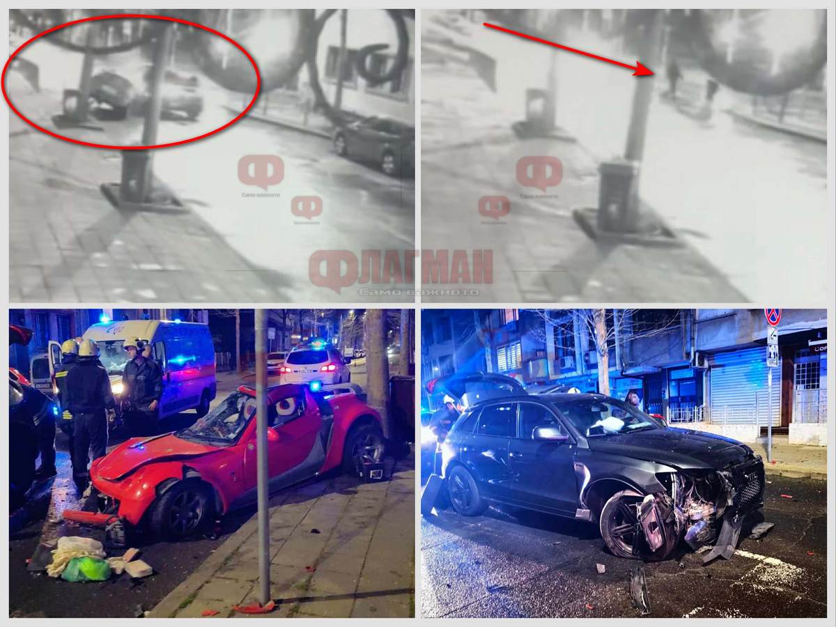 На кадрите се вижда как настъпва ударът - шофьорът на Роудстъра се движи по някогашната ул. "Републиканска", в посока "ул. Богориди", като предприема ляв завой към ул. "Гурко", без да се съобрази с движещия се насреща лек автомобил - Ауди Q5, в посока Новата поща.