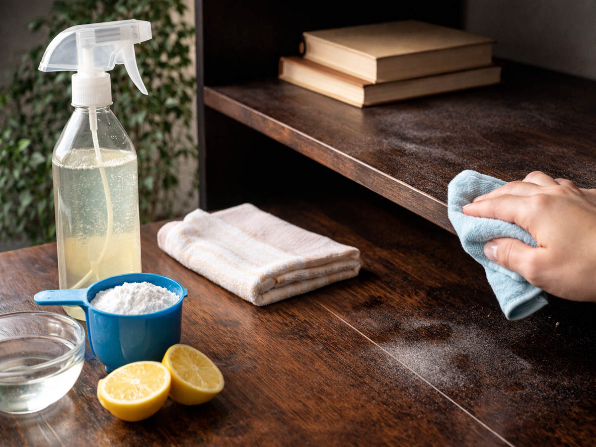 Един от популярните и наистина практични домашни методи включва вода, малко оцет и съвсем капка омекотител за пране. Тази комбинация често се използва в домакинството, защото помага повърхността да остане по-гладка и по-свежа, а прахът да не полепва толкова бързо. Разтворът се нанася върху кърпата, а не директно върху мебелите, особено ако става дума за дърво или по-чувствителни повърхности. След това се минава внимателно по рафтовете, шкафовете, масите и другите места, където прахът се събира най-упорито.