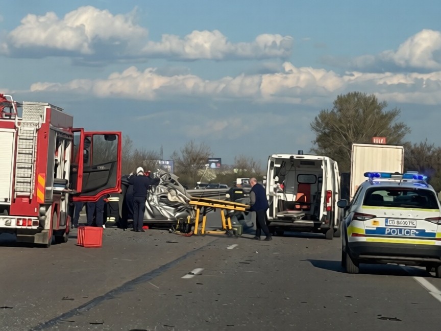 Брутална катастрофа между камион и кола затвори АМ "Тракия" (СНИМКИ)
