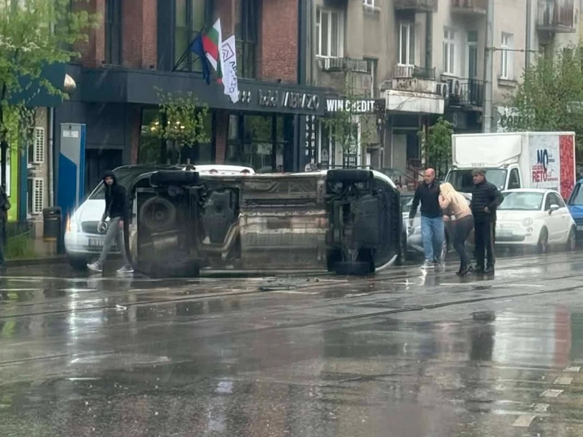 Линейка се преобърна при инцидент на едно от ключовите кръстовища в София - при бул. „Христо Ботев“ и бул. „Сливница“. Според очевидци катастрофата е била предизвикана от шофьор на „Мерцедес“, който е ударил линейката странично и след това е избягал от мястото. Движението в района е силно затруднено поради преобърнатия автомобил и разследването на инцидента.