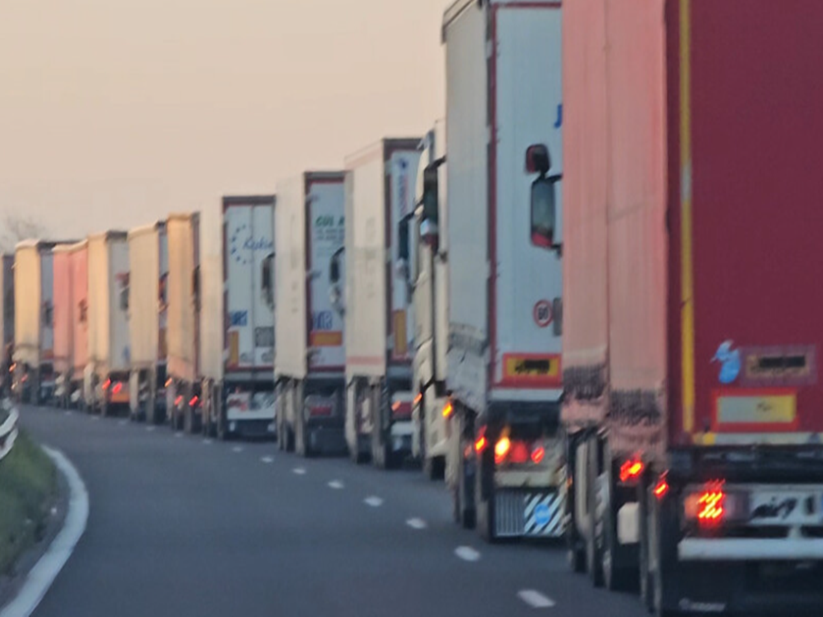 Тази сутрин последните чакащи камиони са между Любимец и Свиленград. Колоната е дълга почти 20 километра. Повечето тирове са в аварийната лента, но има участъци, в които са в две колони и движението на останалите автомобили е силно затруднено.