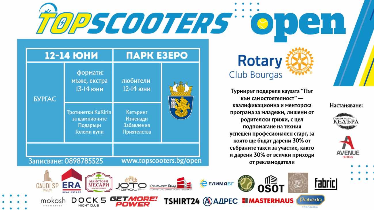 Topscooters Open 2026 ще събере най-добрите непрофесионални тенисисти в България в едно от най-очакваните спортни събития това лято. Турнирът ще се проведе от 12 до 14 юни в Морската градина в Бургас и вече предизвиква сериозен интерес.