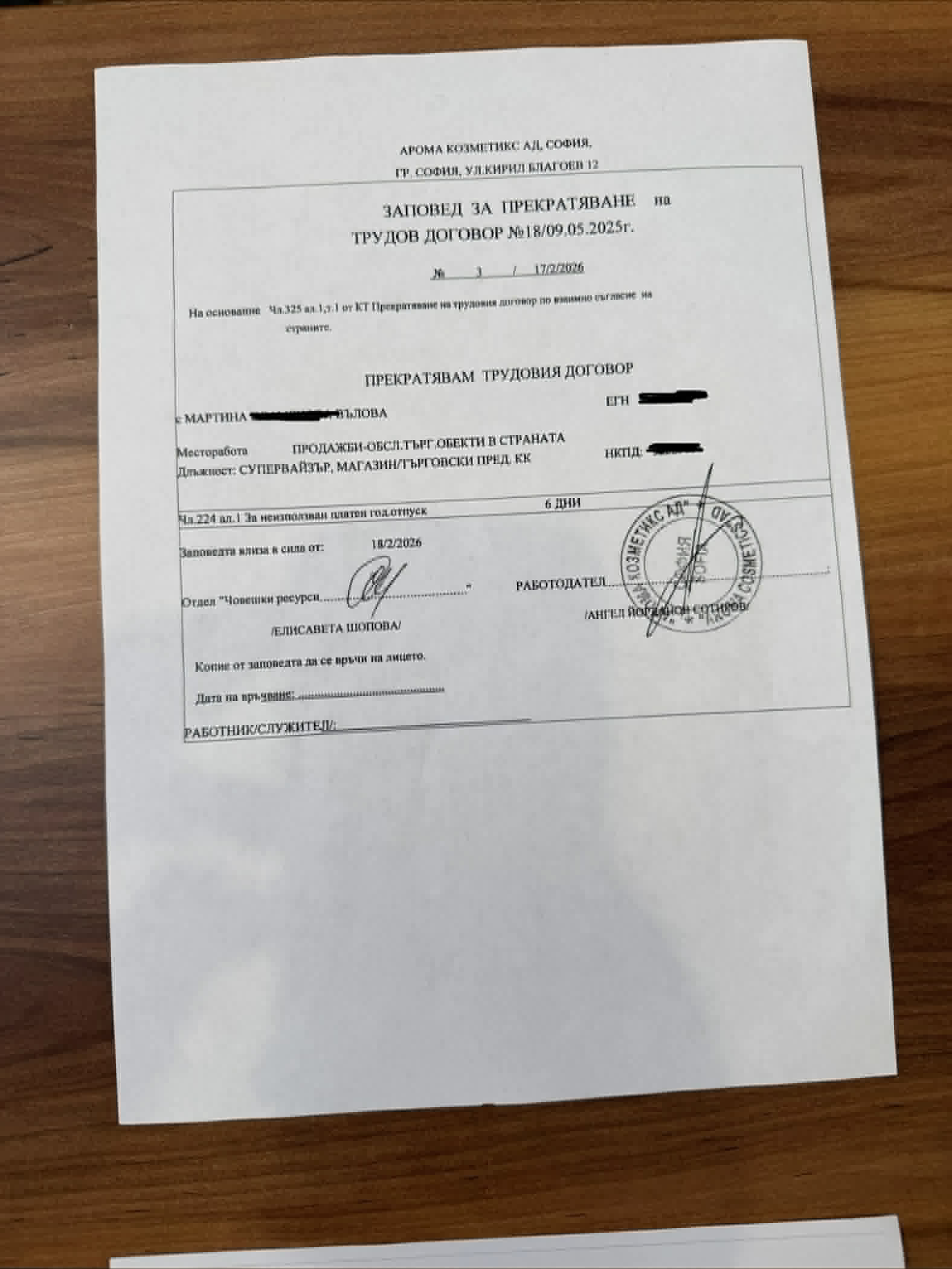 Флагман.бг потърси и козметичната компания за коментар. Според позицията на работодателя трудовото правоотношение с Мартина Вълова е прекратено по надлежния ред, съгласно действащото законодателство, като фирмата оспорва твърденията за допуснати нарушения на трудовите ѝ права.