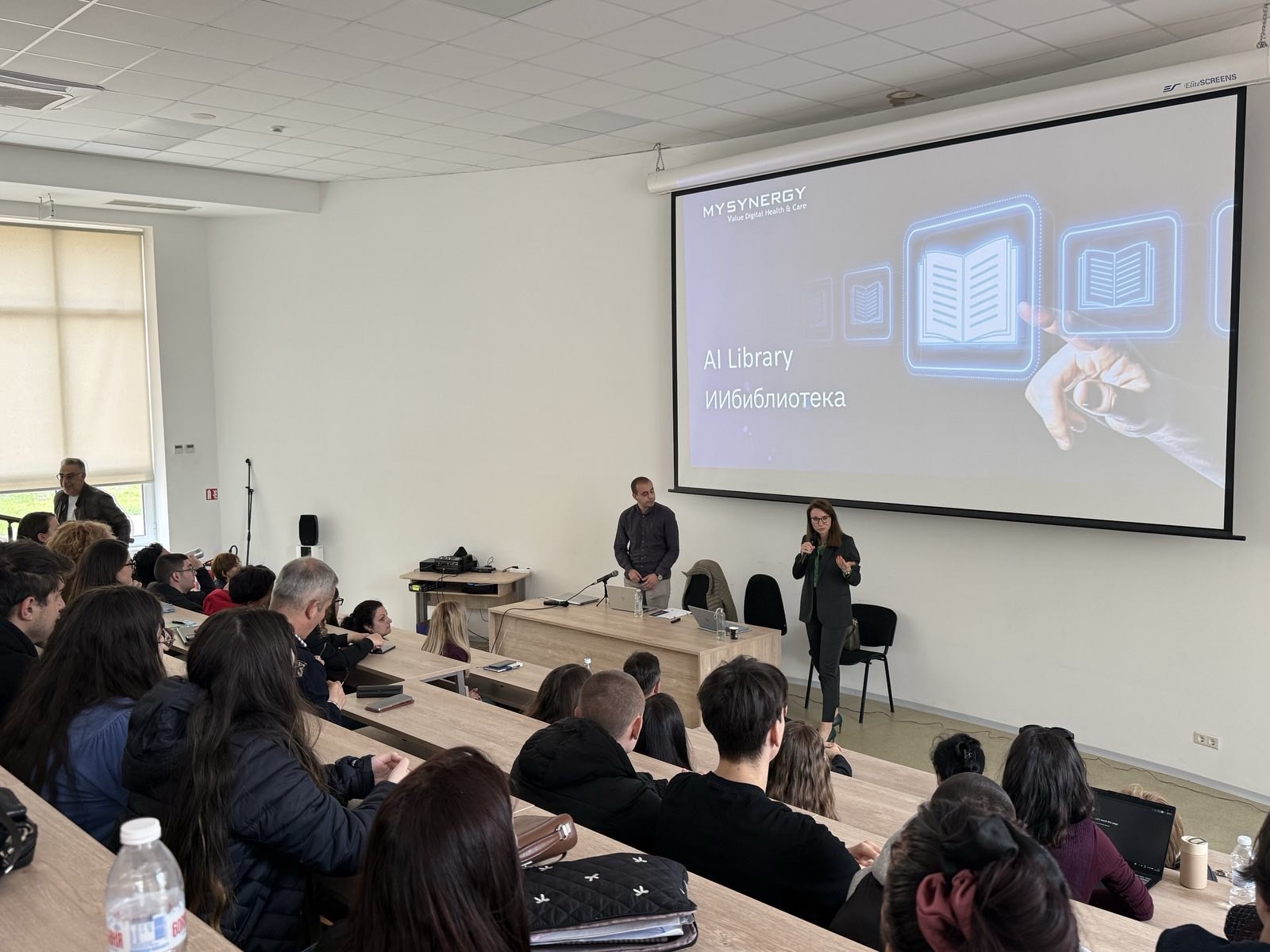 Събитието събра студенти, преподаватели и гости, които имаха възможност да се запознаят отблизо с възможностите на новата система. Лекцията бе водена от представителите на технологичната компания My Synergy - Петър Михайлов, Таквор Нерсесян и Ирена Илиева. Именно компанията стои зад разработването и реализирането на AI библиотеката в университета, в партньорство с IT екипа на БДУ.
