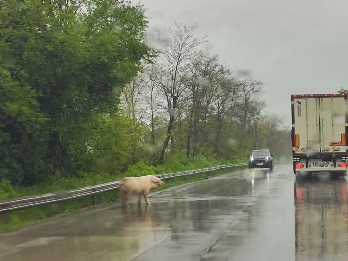 Нещо повече, на този участък се е появило и прасе, което спокойно се разхожда по пътя. Това прави ситуацията още по-опасна, тъй като шофьорите са принудени да маневрират при изключително ограничена видимост. Снимките, споделени от преминаващите шофьори, показват как животното не се притеснява от автомобилите и не осъзнава рисковете.