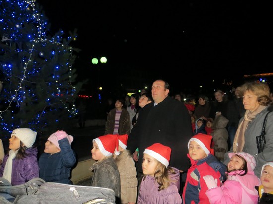 Кметът Иван Жабов, пет годишната Кристияна и спортната надежда Живко Кадънков запалиха празничните светлини, най-щастливи бяха децата