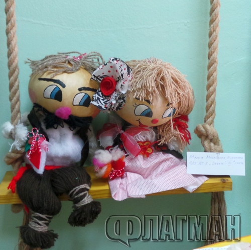 Малчуганите от ОДЗ „Звънче” подредиха приказна изложба с ръчно изработени мартенички за конкурса на Флагман.Бг на тема „Баба Марта бързала, мартенички вързала”. 6-годишните дечица от IV група „Вълшебство” поканиха екипа ни в специално обособения пролетен кът. Там те ни запознаха с Пижо и Пенда, изработени от кратунки, които наблюдават изложбата от специално поставена за тях люлка. Сръчковците измайсториха и мартеничка с красиви звънчета, която подариха на своите учителки.