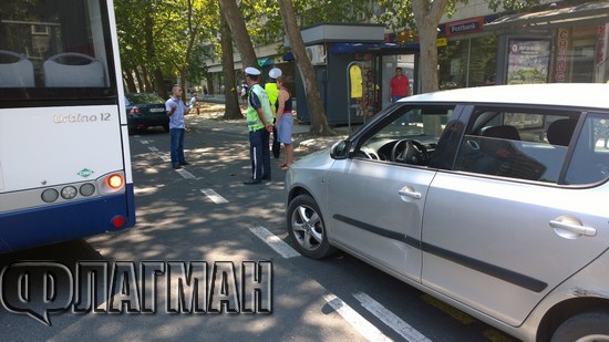 Лек автомобил „Шкода“ и автобус 12А се сблъскаха на бургаския бул. „Демокрация“, на спирката срещу „Краставицата“. Инцидентът стана преди минути (13,00 часа) днес, предаде репортер на Флагман.БГ. По първоначална информация виновна за катастрофата е водачката на колата.